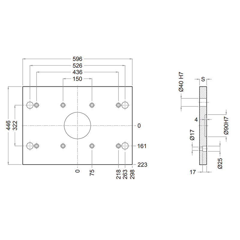 PDC 396x596- Lateral Overhanging Top / Bottom Clamping Mounting Plate