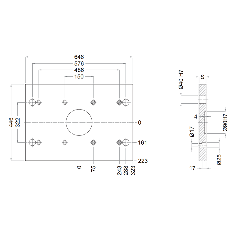 PDC 396x646- Lateral Overhanging Top / Bottom Clamping Mounting Plate