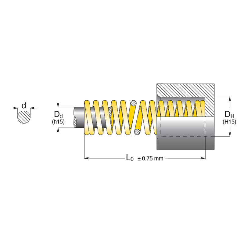 Our yellow die spring, for extra heavy loads. Round wire high force compression spring, RoHS compliant.