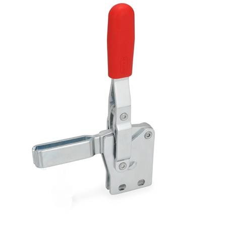 These vertical acting toggle clamps GN 810.1 work according to the toggle principle: both the lever and clamping bar move in the same direction. In the clamped position the operating lever is in its vertical position.