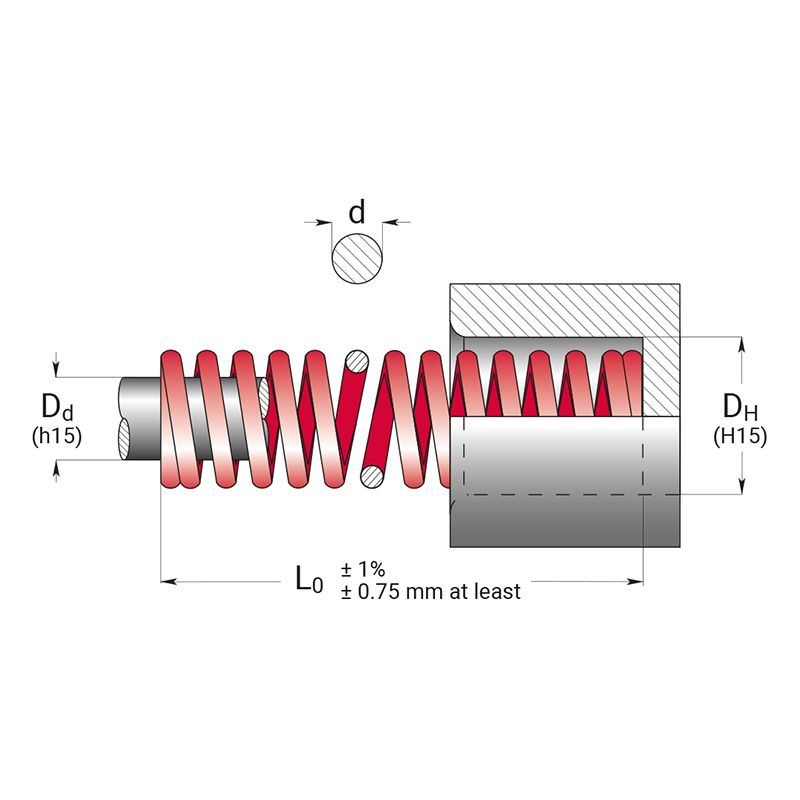 Our red die spring, for heavy loads. Round wire high force compression spring, RoHS compliant.