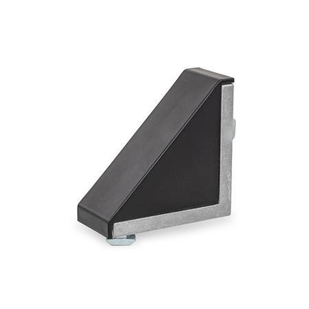 Angle brackets GN 30b fasten aluminium profiles to objects such as tables and panels or at right angles to each other. Machining of the profile is not necessary.